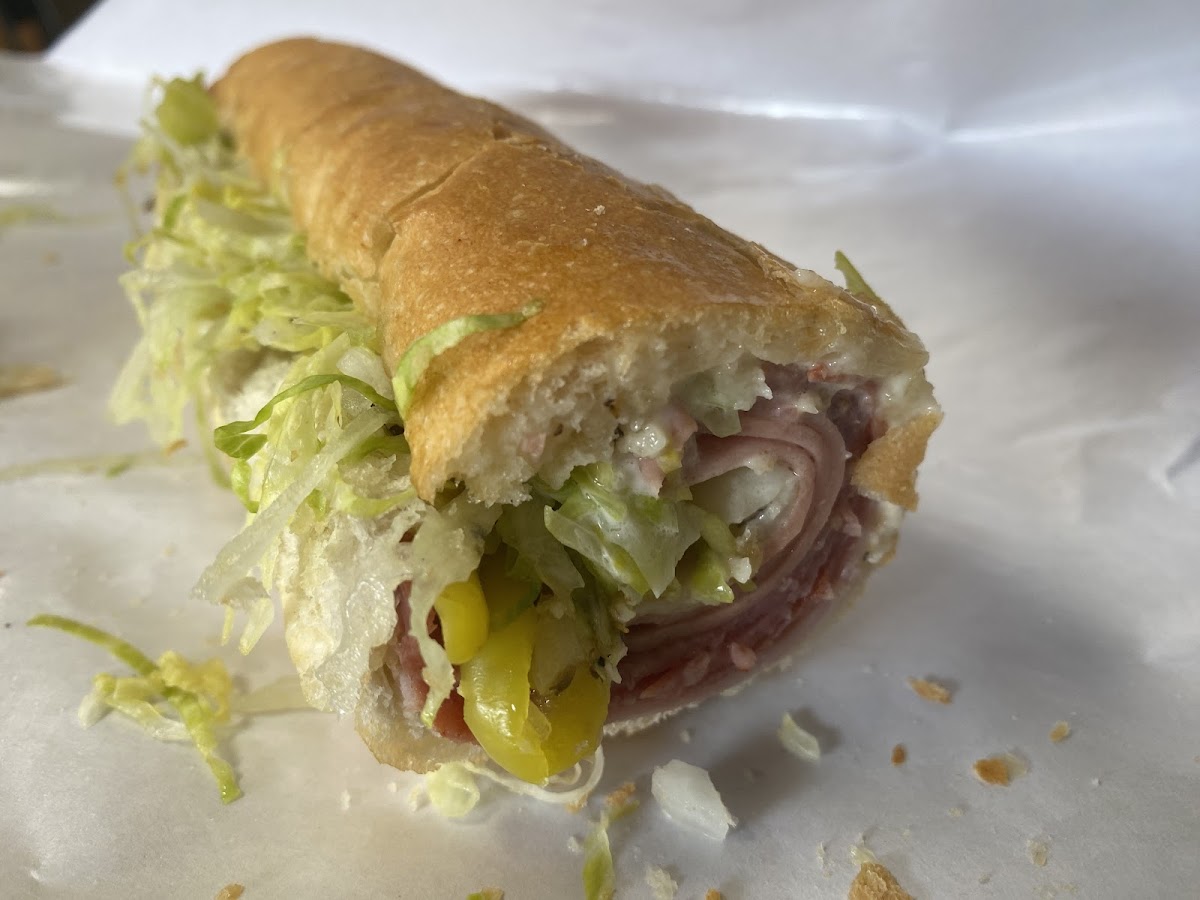 One of the most perfect subs (hoagies) I’ve ever had. Stopped here while passing through and found the place in google maps. Ordered two large subs-they were each about 16 inches long. It is hard to find a place that has the perfect roll-they have it. Every bit as good as the bread in Philly. Thin crunch on the outside and perfect texture underneath to hold the fillings. Tasted fantastic. Staff was super courteous and I will be putting this down as a stop for future trips when I pass through. I will probably get three or 4 meals out of just that one sub. Kudos to the owners and staff-this place is a gem and just a quick trip off of I-99. Pardon the picture of one half of one sub. I had to take pic after I had the first bite. This is the real deal.